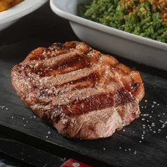 Um prato sofisticado: suculento ribeye grelhado na perfeição, servido com dois acompanhamentos à sua escolha. Uma combinação irresistível para um sabor incomparável!